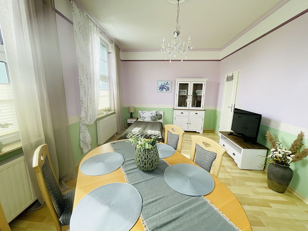 Die Wohnung verfügt über ein Schlafzimmer mit zwei Einzelbetten, ein Bad mit Dusche sowie eine vollständig ausgestattete Küche mit Backofen, Herd, Mikrowelle und Kaffeemaschine. Zur modernen Ausstattung gehören WLAN, Fernseher mit SAT-Empfang und Netflix, Waschmaschine und Geschirrspüler. Kostenfreie Parkplätze stehen Ihnen direkt am Haus zur Verfügung.